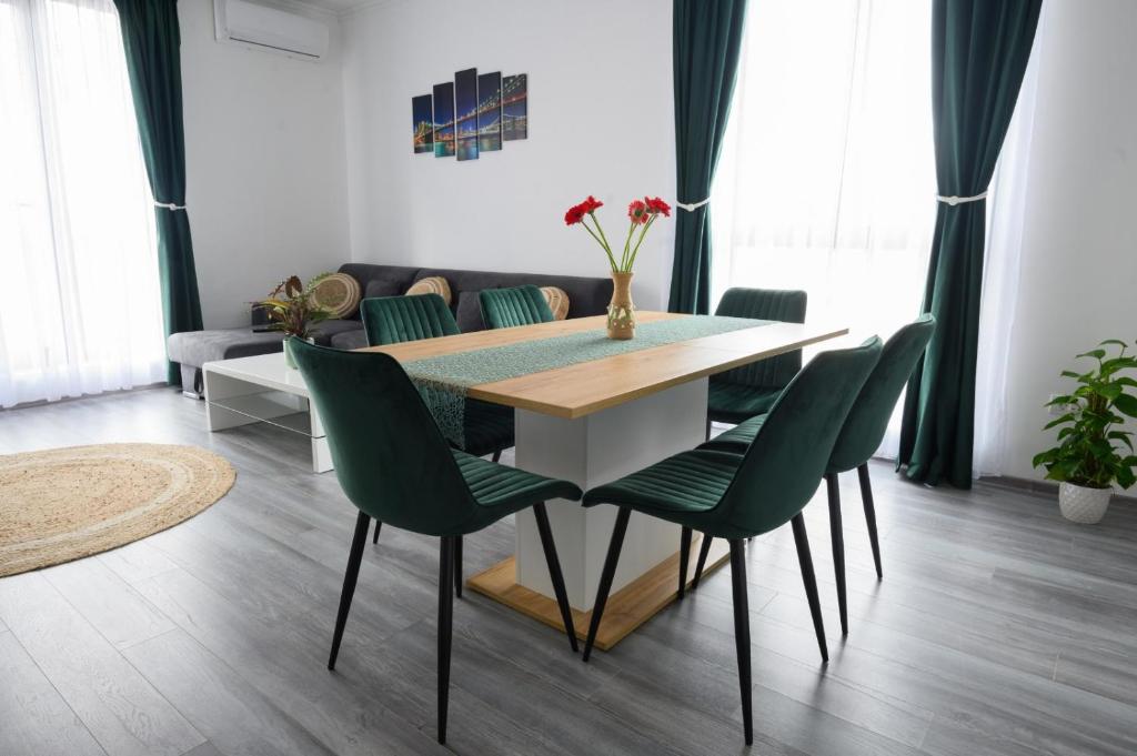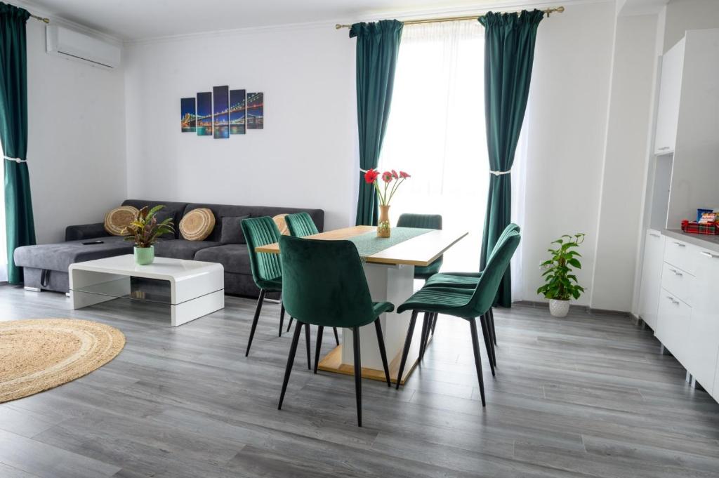 Apartamentul nostru cu două camere din Băile Felix nu dezamăgește niciodată. Acesta include un living open-space confortabil pentru întreaga familie, o bucătărie complet utilată ca acasă, un smart TV generos și un dormitor spațios și primitor. Bineînțeles, vă puteți bucura și de o baie modernă, complet echipată. Iar vedeta locației este terasa luminoasă, ideală pentru clipe de relaxare sau seri memorabile alături de cei dragi.